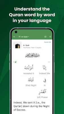 Norintiems išties suprasti kiekvieną Korano žodį, programa siūlo išsamią žodžių analizę su vertimais daugiau nei 15 kalbų. Pasinerkite į arabiškų šaknų, gramatikos, morfologijos ir įvairių formų tyrinėjimus, kurie padės geriau įsisavinti Korano arabų kalbos niuansus. Autentiškam skaitymo pojūčiui sukurtas „Mushaf" režimas, leidžiantis skaityti Koraną taip, tarsi laikytumėte fizinę knygą, su galimybe rinktis iš įvairių rašybos stilių, tokių kaip Madani ar Indopak. Be to, Tajweed spalvotas Koranas palengvins taisyklingą tarimą, o išsami Korano žodyno funkcija leis tyrinėti skirtingų arabiškų raidžių šaknis.