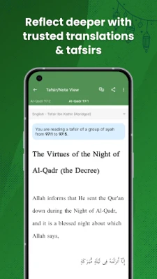 Atraskite naują, gilų ryšį su Šventuoju Koranu naudodami Greentech Apps Foundation sukurtą programą, kuri atveria jo išmintį plačiajai auditorijai. Ši programa leidžia jums gilintis į Korano mokymus, siūlydama daugiau nei 175 vertimus ir interpretacijas (Tafsirus) net 65+ kalbomis, įskaitant anglų, indoneziečių, bengalų, vokiečių, prancūzų ir daugelį kitų. Be to, rasite aštuonis originalius arabiškus Tafsirus, tokius kaip Tafseer Ibn Kathir, kartu su detalia žodžių reikšmių, Asbabun Nuzul ir gramatikos analize, praturtinančia jūsų studijas. Viską papildo širdį raminančios recitacijos, kurias galite klausytis iš daugiau nei 80 žymių Qari, tarp jų Mishary Al Afasy ir Abdur Rahman As-Sudais, su patogiu audio valdymu ir galimybe klausytis vertimų.