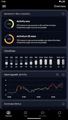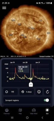 Pasinerkite giliau į kosmoso platybes su išsamiais duomenimis. Mėgaukitės beveik realaus laiko geomagnetiniu aktyvumu, gaunamu iš daugiau nei 110 magnetometrų tinklo visame pasaulyje, suteikiančio neprilygstamą tikslumą. Stebėkite Saulės veiklą su pažangiu Saulės vaizdų grotuvu, kuriame rasite rentgeno spindulių diagramas ir detalias Saulės regionų analizes. Analizuokite Saulės vėjo diagramas ir Kp prognozes, kad suprastumėte kosminio oro poveikį mūsų planetai ir pašvaistės intensyvumui. Šios žinios leis jums tapti tikru kosmoso orų ekspertu.