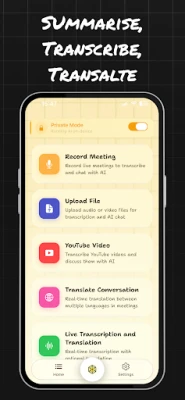 Konfidencialumas ir efektyvumas yra MeetingsAI kūrimo šerdis. Privatus režimas garantuoja, kad Jūsų jautrios diskusijos ir asmeninė informacija išlieka visiškai saugios, apdorojamos 100% Jūsų įrenginyje, net ir be interneto ryšio, su atsisiunčiamais AI modeliais. Ši programa palaiko „Apple Intelligence" suderinamuose įrenginiuose ir nereikalauja jokios paskyros, leidžiančios naudotis anonimiškai. Be to, MeetingsAI puikiai įrašo susitikimus su automatinėmis transkripcijomis realiuoju laiku, palaiko garso ir vaizdo failų įkėlimą (MP3, MP4, M4A, WAV ir kt.) bei YouTube vaizdo įrašų transkripciją tiesiai iš nuorodų, palaikydama daugiau nei 100 kalbų su aukščiausiu tikslumu. Išmaniosios AI funkcijos ne tik sudaro esminių punktų ir veiksmų planų santraukas, bet ir leidžia „kalbėtis" su Jūsų susitikimais, užduodant klausimus bet kuriai transkripcijai.