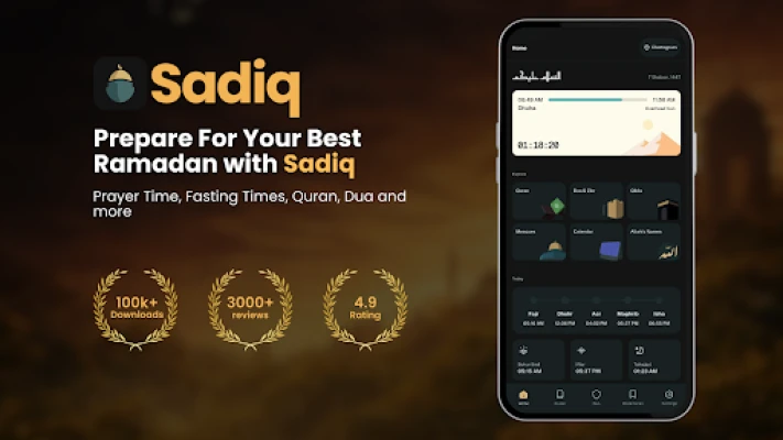 Sadiq: Prayer Time, Quran, Dua yra jūsų kasdienis dvasinis palydovas. Gaukite tikslų maldos ir pasninko laiką, Qibla kryptį, Hijri datą. Rasite pilną Koraną, Dua rinkinius ir artimiausias mečetes. Programa sukurta palaikyti jūsų ibadah, be jokių reklamų ir visiškai nemokamai.